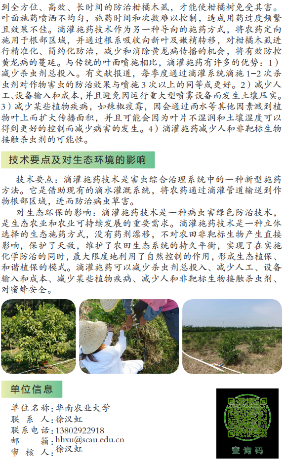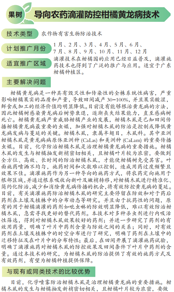 2022年农业主推技术:导向农药滴灌防控柑橘黄龙病技术