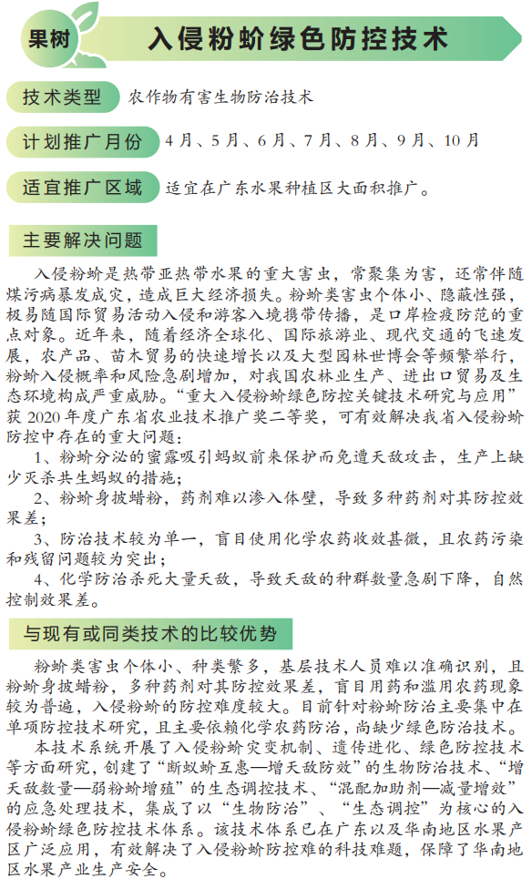 2022年农业主推技术:入侵粉蚧绿色防控技术 果树