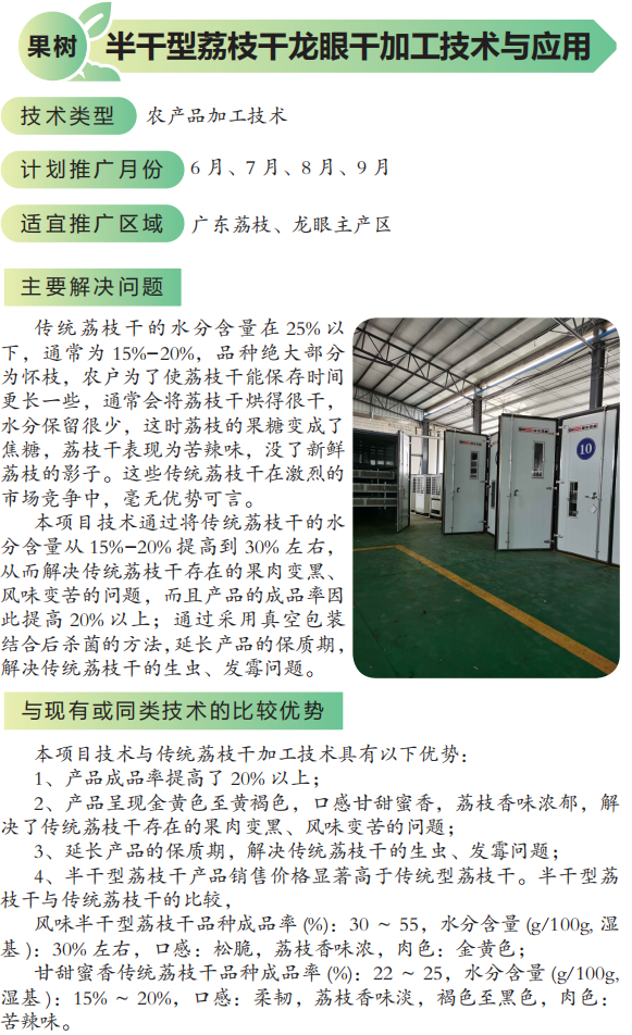2022年农业主推技术:半干型荔枝干龙眼干加工技术与应用