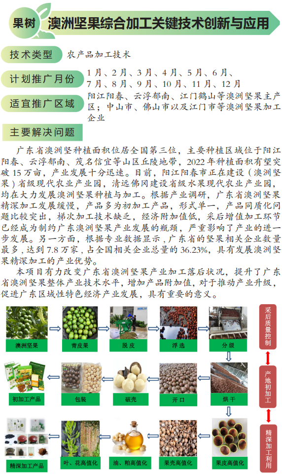 2022年农业主推技术:澳洲坚果综合加工关键技术创新与应用