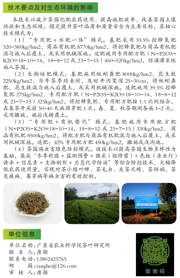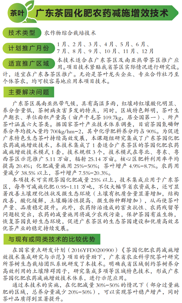 2022年农业主推技术:广东茶园化肥农药减施增效技术
