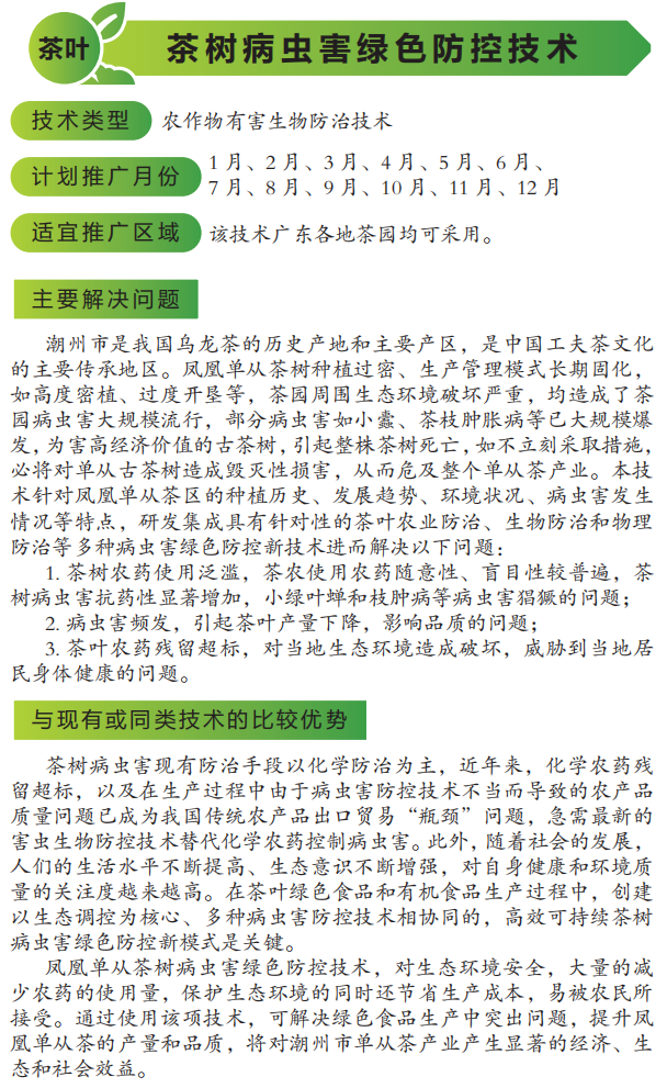 2022年农业主推技术:茶树病虫害绿色防控技术