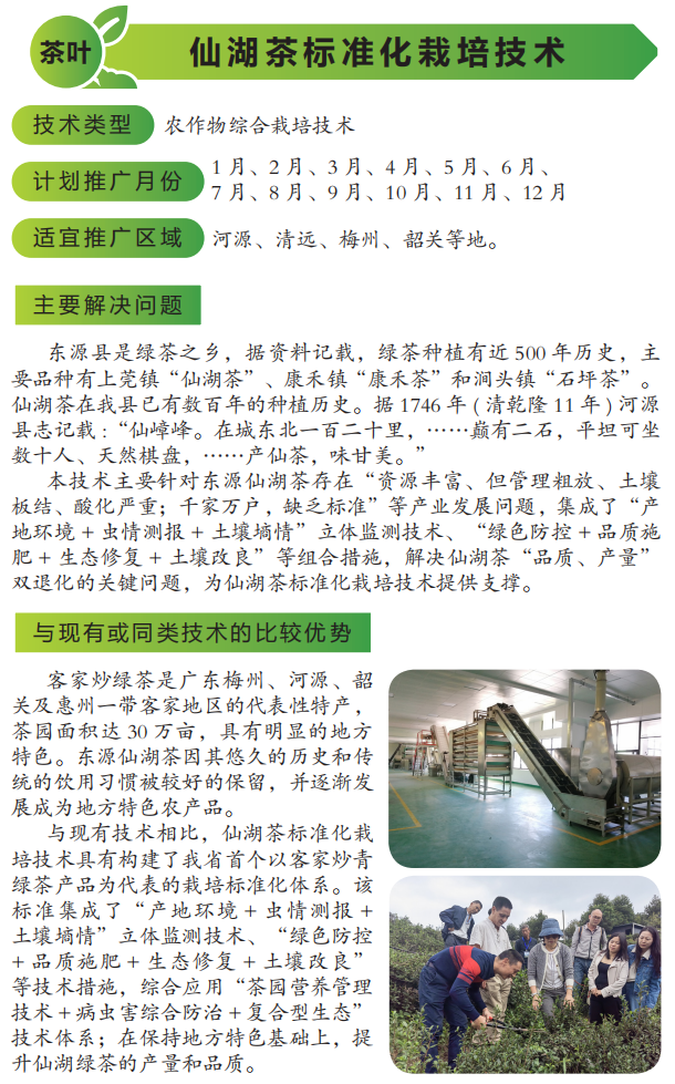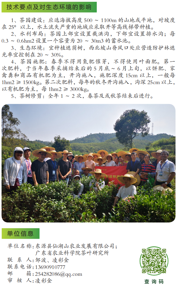2022年农业主推技术:仙湖茶标准化栽培技术