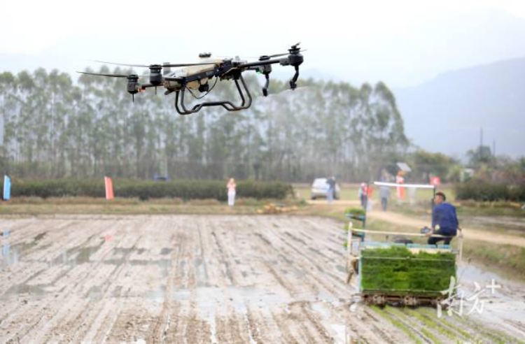从一些随处可见的场景和案例,就能体会到广东的这一“硬核”有多硬:华南农业大学罗锡文院士团队在广州增城启动全球首个水稻无人智慧农场,实现了耕种管收全程无人化作业;广州绿翔机电安装工程有限公司生产全自动蔬菜移栽机,首创采用一次取苗、2次投苗设计,目前在全国同类型产品中处于技术领先地位;大疆、极飞等企业推出的农用无人机穿梭于田间地头,进行着植保、监测、播种、施肥作业……