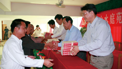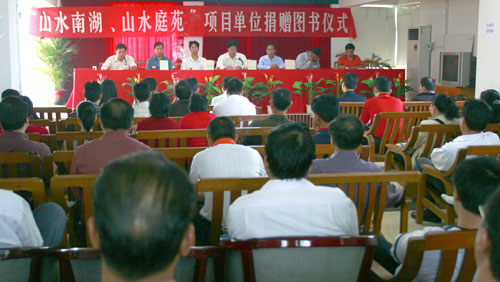 10月23日上午,由“山水南湖、山水庭苑”项目单位向山区农村捐赠《中国新型农民素质读本(广东编)》的仪式在广东省清新县飞来峡镇隆重举行。广东省扶贫办领导,清远和清新县的有关领导到会并讲话,对捐赠单位的善举给予赞扬并表示感谢。