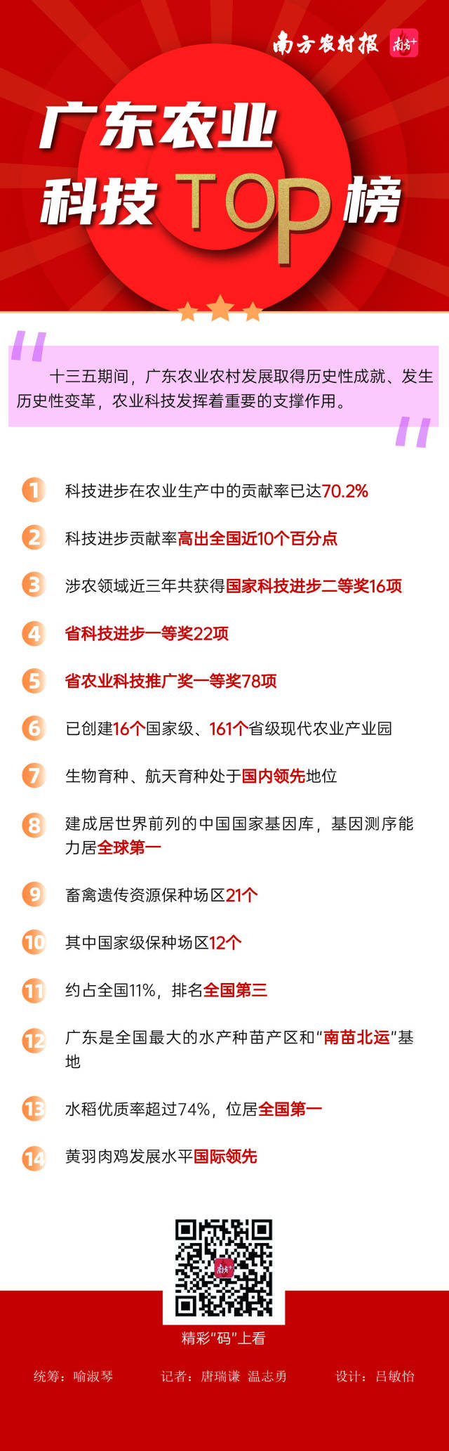 “十三五”期间,广东农业现代化取得长足发展。农业科技发挥着重要的支撑作用,农业科技人员把成果写在大地上。试问广东农业科技哪里强?请君一览广东农业科技top榜!
