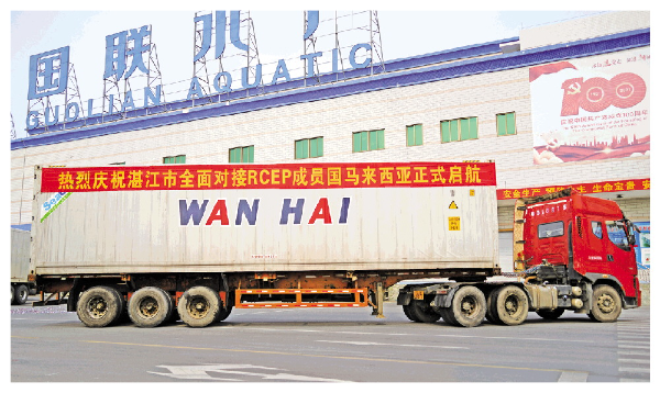 记者了解到,《区域全面经济伙伴关系协定》(RCEP)在3月18日对马来西亚正式生效。当天上午,满载金鲳鱼预制菜的货柜车从广东国联水产集团出发,经湛江海关发往RCEP成员国马来西亚。广东省再次把握成员国协定生效节点,完成农产品出口。