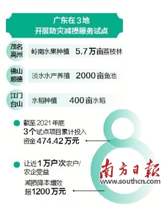 这是广东探索“保防救赔”一体化服务体系的深度试点项目之一。除了江门台山水稻种植,广东银保监局还选取茂名高州水果种植、佛山顺德水产养殖作为试点项目,由3家保险机构负责实施。