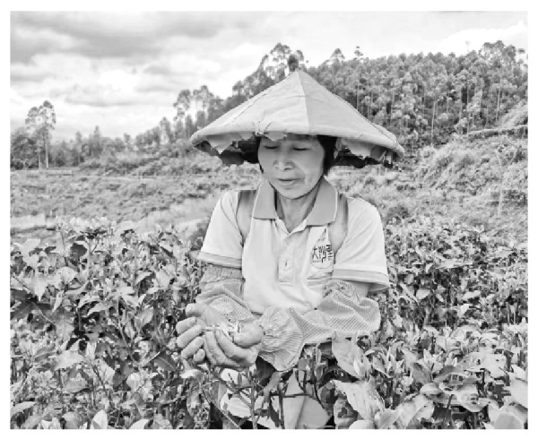 “我是蕉园村村民,我到这里采茶一天的收入150~200元,我们在家门口就能挣到钱,不用外出打工。”村民一边熟练地采茶,一边笑嘻嘻地说。