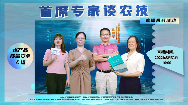8月31日,《首席专家谈农技》直播 第十三期 水产品质量安全专场在广州国家现代农业产业科技创新中心成功开播。广东省现代农业产业技术体系水产品质量安全和环境协调创新团队首席专家陈胜军研究员、水产品质量安全检测技术岗位专家黄珂副研究员和水产养殖环境协调与控制岗位专家赖子尼研究员做客直播间。