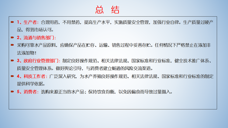 为保障水产品质量安全,满足人民日益增长的对美好生活需求,确保水产品“舌尖上的安全”,本期直播,专家们重点介绍了水产品质量安全情况、影响水产品质量安全的因素、提高水产品质量安全的重要措施、水产养殖环境对水产品质量安全的影响、水产品质量安全检测监督以及水产品预制菜发展前景等方面的内容。