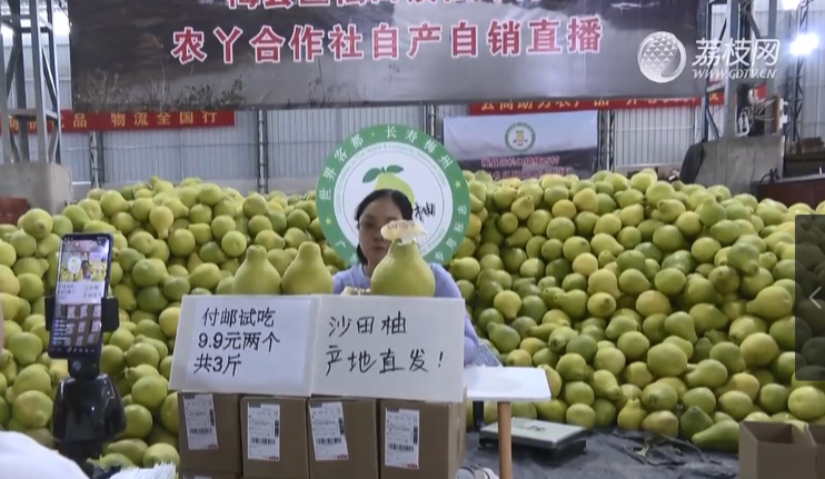 在梅州梅县松口镇的乡村振兴农产品云商物流中心,面积4000平方米的大仓库被分隔成一个个直播间,柚农们纷纷变身为带货主播。