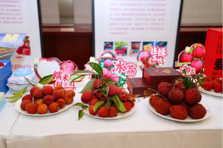 在精心布置的品鉴区,广东精品荔枝琳琅满目。