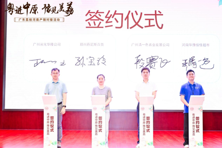 广东荔枝企业代表与多家河南知名企业签订购销意向合作协议。