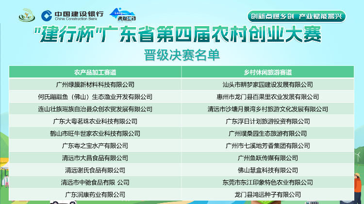 20个项目晋级“建行杯”广东省第四届农村创业大赛总决赛