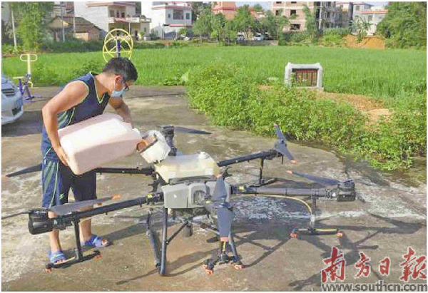 6月中旬汛情以来,英德大量粮田受淹,排水、补肥、喷洒杀虫杀菌药,无一不是紧急工作。“我们一个机手,平均每天飞三四百亩。”英德市横石水兴旺农机合作社无人机机手林豪杰说。