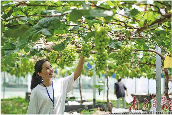 马安镇龙塘村大力发展文农旅产业。图为龙塘村神农兰香谷葡萄园,游客体验采摘。南方日报记者 王昌辉 摄