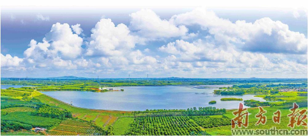遂溪县官田水库旁夏威夷果园周边风光优美。
