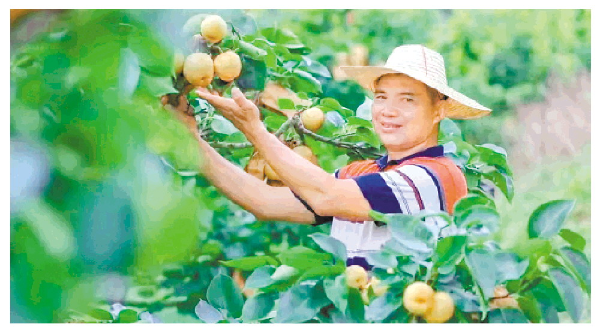 走进梨园,几名村民正忙着修枝、摘果、打包、转运,忙得不亦乐乎。“我们村2014年开始种植桂花梨,2017年投产后果质受到市场广泛认可,种植面积从原来的30亩发展到800多亩。目前我们村的桂花梨平均单果重约400克,亩产约2500公斤,亩产值约12000元。桂花梨已成为我们村民的‘致富果’。”桂花梨种植户朱郁荣说。