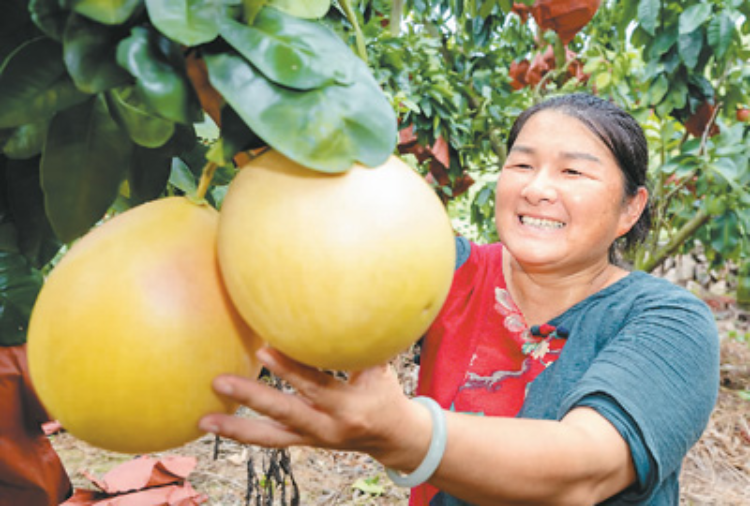 “我有两份收入。在产业园务工有固定工资,每年卖自家种的柚子也能赚钱。”村民张新华说,她很享受现在的生活,在家门口上班,能照顾孩子,能打理自家的柚子园。
