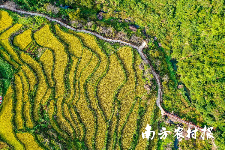 金黄的梯田,仿佛秋天给大山编织的金色毛衣 揭西同乡/图