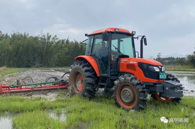 佛山市明丽农业总经理梁庆斌说:“我们提前把所有机器测试,迎接春耕。这是按照我们的农艺要求优化设计出来的机器,最大特点是可以用100马力的拖拉机带动,是我们自主开发,第三方代工加工出来的农业机器。”