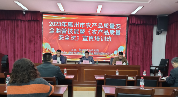 为强化提升基层农产品抽样及检测技能,近日,惠州市农产品质量安全监管技能暨《中华人民共和国农产品质量安全法》宣贯培训班在市农业综合检测大楼召开。培训班由惠州市农业农村局主办,惠州市农产品质量安全监督检测中心承办,全市、县(区)农产品质量安全监管人员(含畜牧、水产品部门)以及协助抽样的检测人员共40余人参加。