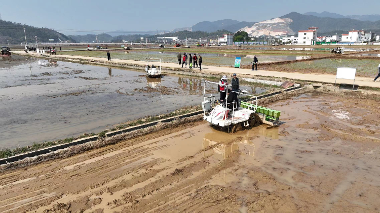 会议现场,拖拉机、旋耕机在轰鸣声中犁田、翻地,无人植保机在空中来回穿梭播种、施肥。会议代表们观摩了机耕、机播、机插、集中育秧、无人农机等各类农机装备现场作业和农业机械、农业科技、放心农资和农业金融保险服务等支农下乡活动。初步统计,2023年全省春耕备耕预计投入拖拉机、插秧机、农用无人机等绿色、高效、智能农机装备超百万台(套),各地机械化集中育秧有序开展。