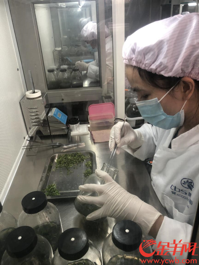 随后专题组,参观到园区最核心地带“育种栽培室”。在栽培室里,工作人员穿着无菌衣用镊子将种苗放进玻璃瓶中进行培育,赵丽华非常自豪地说道,“公司是以‘热带兰花(国际)种业研发中心’为依托,集花卉育种研发、生产种植、鲜切花、生物科技、市场营销、花艺设计制作为一体的大型企业。我们拥有自主知识产权的蝴蝶兰、万代兰、树兰、卡特兰、石斛兰等名优花卉品种达300多个,尤其是香水蝴蝶兰,具有较强的国际竞争力。目前,公司年产热带兰花组培苗700余万株,年产值约3亿元人民币,客户涵盖欧美及亚洲数十个国家和地区。”