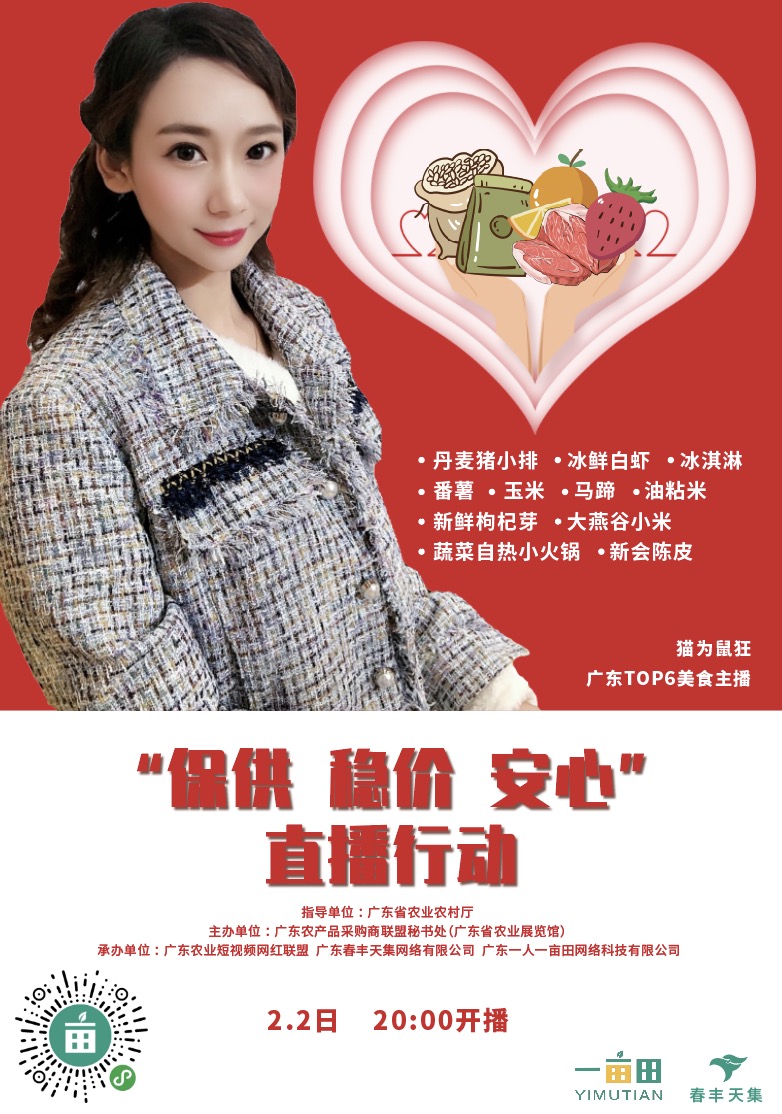 2月2日晚上20时,平台还将首次直播带货。邀请广东TOP6的美食主播,直播为丹麦猪小排、冰鲜白虾等带货。