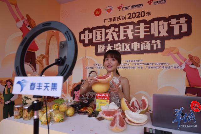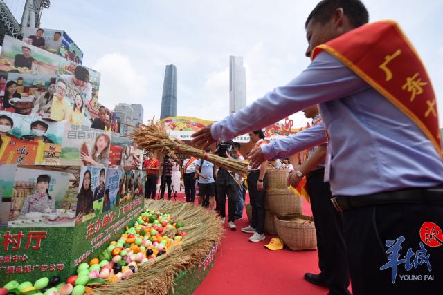 更重头的是,9月23日启动的还有大湾区电商节,将庆丰收与金秋消费相结合。在海心沙广场,2020年全省乡村振兴与脱贫攻坚成果展正在展出,附近舞台两边次第排开的十个独立直播间,同时上线推介“粤字号”优质农产品,促进了广东各地优质农特产品产销对接。