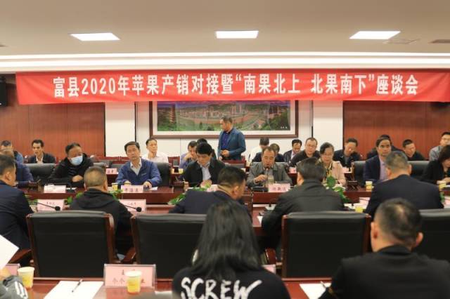 9月27日,受县委县政府邀请,陕西省果业中心贸易处处长王若臣,广东省农展馆副馆长蔡丽君,广东省遂溪县、德庆县和阳西县政府分管领导,以及华润万家(控股)集团公司、珠海市场经营集团、北京一亩田公司等34家国内知名苹果营销企业的负责人来到富县,参加富县2020年苹果产销对接暨“南果北上 北果南下”座谈会,共同探讨“南果北上 北果南下”工作,沟通对接加快推动富县“延安苹果”销售。会议由副县长许新选主持。