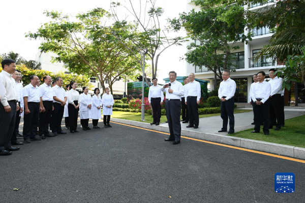 4月10日至13日,习近平在海南省委书记沈晓明、省长冯飞陪同下,先后来到三亚、五指山、儋州等地,深入科研单位、国家公园、黎族村寨、港口码头等进行调研。