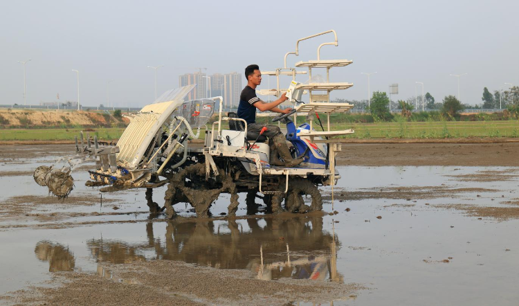 刘锡洪操作插秧机