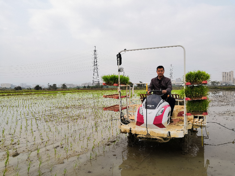 吴川市塘缀宇枫农机种植专业合作社理事长林宇枫拒绝了大型农机公司的高薪挽留,果断购买了拖拉机、收割机等一批农机械,回到家乡,做起了一名专业的农机维修工,并努力学习水稻种植。合作社积极引进先进适用的农业机械,如精量穴直播机、大疆无人机等,带动吴川市塘缀镇、黄坡镇等周边镇的农户大力发展水稻生产全程机械化,为市场提供专业的农机托管服务,改变人工播种落后的现状。