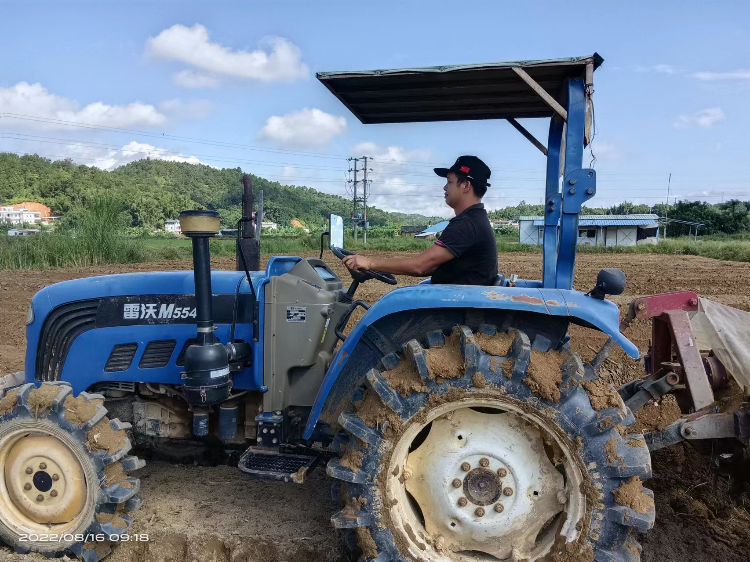 邱文庆在操作农机