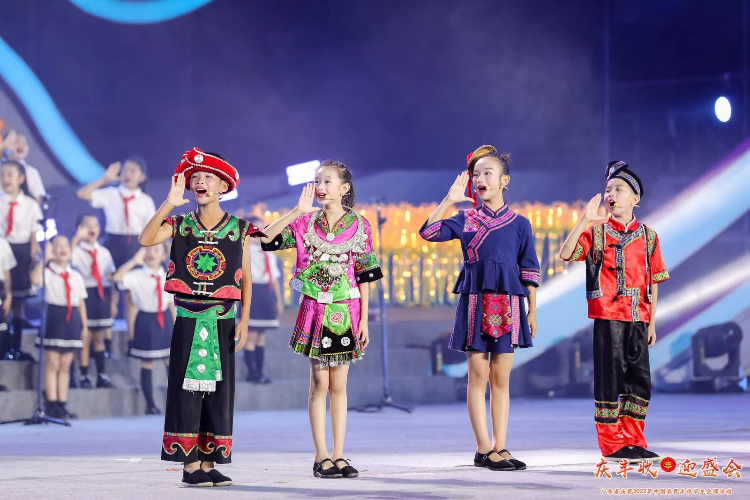 全面推进乡村振兴,不仅要振兴经济,也要振兴文化,而音乐作为文化的重要展现形式,在乡村振兴中必不可少。近年来,广东持续探索东西部协作、消费帮扶新模式,联合广西、贵州在全国首创推出“省内全覆盖+省际间联动”音乐帮扶计划,充分发动广东各驻镇帮镇扶村工作队和东西部协作粤桂、粤黔协作工作队的力量,创新驻镇帮镇扶村和东西部协作工作,助力帮扶地区文化振兴,让广大干部群众在干好乡村振兴的同时,描绘乡村振兴,赞美乡村振兴,歌唱乡村振兴,促进一二三产业融合发展,全面推进乡村振兴。来自粤桂黔三地的学生代表,用动情的歌声演绎了乡村振兴音乐帮扶计划之“音乐之星”育苗成果《山海之恋》。童声朗朗,音乐的种子在孩子们心里生根发芽,东西部协作结出新的硕果,现场观众为之动容。