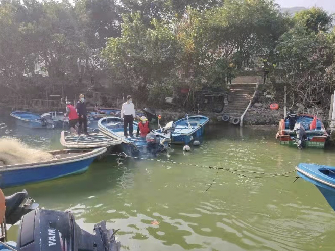 为维护春节期间渔业安全生产秩序,严防疫情海上输入等问题发生,根据省、市、区关于春节期间打击应节商品走私、渔船“不安全、不出海”专项行动以及疫情防控等相关工作要求,1月27日下午,在深圳市海洋综合执法支队的组织安排下,大鹏大队联合深圳市公安局大鹏分局、深圳海警局大鹏工作站和南澳办事处等部门,在杨梅坑海域及新大河南涌开展清港清湾联合行动。