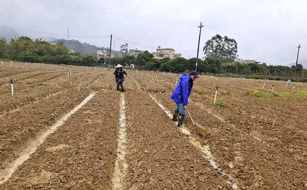 2月22日上午,冷雨依旧淅淅沥沥,在博罗县公庄镇大陂村,博罗县金信农产品种养专业合作社的蔬菜种植基地里却一片忙碌,工人们披着雨衣在采摘菜心,然后将菜心装筐、上车,再运到市场销售。该合作社负责人李志明说,雨水太多,会让蔬菜出现烂叶;持续冷雨也会将蔬菜冻坏,“冒雨抢收蔬菜,既是为了降低损失,也为了保障市场的供应。”在蔬菜地的另一边是另外一番忙碌的景象,20多个工人在整地、起陇,准备播种。李志明说,冷雨天,市场的蔬菜肯定会受影响。及早谋划,将地整好,天气好点,就可以播种、抢种,这样蔬菜就能第一时间供应,能保持市场蔬菜的正常供应。