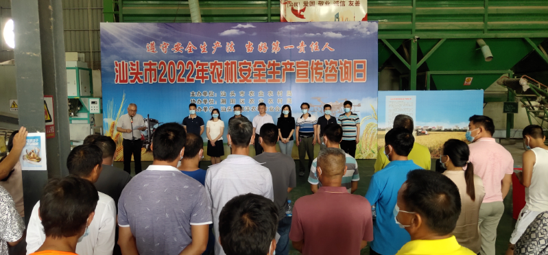 6月14日,汕头市农业农村局在潮阳区锦沣农机专业合作社举办2022年农机安全生产宣传咨询日活动。市直和区县农机管理、执法监督、政策法规相关部门负责同志,潮阳区农机专业合作社负责人、农机大户代表等70多人参加活动。
