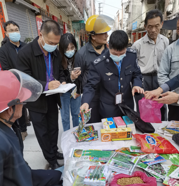 广州市农业农村局组织相关人员到农药生产、经营和使用单位开展安全生产检查。通过查看生产设备设施、应急救援设备设施,查阅应急救援预案、安全生产相关制度与记录,现场检查消防器材等方式,对各单位安全生产落实情况进行检查,指出存在问题和隐患,提出整改要求和整改时限。3月9日在监督检查中发现的2个涉嫌假农药产品,现场移交给执法部门。