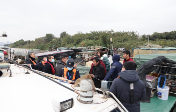 2月24日,广东省海洋综合执法总队徐放政总队长一行到中山市开展渔船渔港疫情防控督导检查工作,中山市常务副市长叶红光、副市长刘云梅,市农业农村局局长陈永华、副局长吴敏华、市海洋综合执法支队支队长梁灶带等陪同。