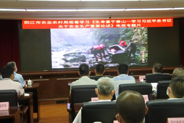 7月15日,阳江市农业农村局组织全局干部职工、下属单位负责同志共70多人集中观看学习《生命重于泰山——学习习近平总书记关于安全生产重要论述》电视专题片。市农业农村局关德荣局长和有关党组成员参加了集中观看学习。专题片全面阐释了习近平总书记关于安全生产重要论述,既有权威解读又有案例分析,素材丰富、剖析深刻,令人警醒、深受触动,对于教育引导我们广大党员干部牢固树立安全发展理念,扎实做好安全生产各项工作具有重要意义。