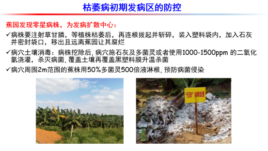 吕顺研究员提供了香蕉枯萎病、软腐病和鞘腐病的详细鉴别和防治信息。通过对比三种病害的田间表现、叶片变化、气味和发病速度,可以更准确地识别病害,从而采取针对性的防治措施。