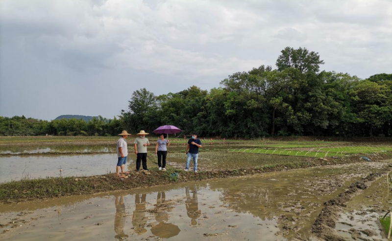 7月17日,镇党委书记黄锦桥到田江村实地巡查晚造粮食种植情况