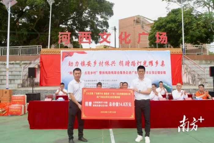 秉持为民服务宗旨,在省通信管理局指导下,三七互娱捐赠价值10万元的100盏太阳能路灯,广东狮子会筹措价值4万元的40盏太阳能路灯,这些路灯将安装于镇安镇碧道、河西村及福利服务中心等地,为村民夜间出行提供安全保障。同时,爱心企业还为残疾人送上关爱物资,镇安镇党委书记张锦然为企业颁发感谢奖,传递了政企的温暖关怀。