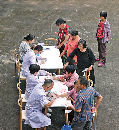福建省泉州市高峰村,在驻村第一书记丰晓飞的协调下,当地组织医务人员为村民义诊。丰浩宇摄(影像中国)