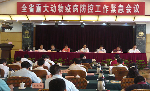 会议强调,全省各级农牧部门要科学判断当前的防控形势,切实按照省委、省政府的工作部署,进一步增强做好禽流感、高致病性猪蓝耳病等重大动物疫病防控工作的紧迫感、责任感和使命感。落实关键措施,切实加强禽流感等重大动物疫病防控工作,严防疫情发生和扩散。一是切实履行职责,落实防控责任。确保各项工作依法、有力、有序开展,坚决做到无疫严防,有疫严控,坚决打好打赢防控重大动物疫病攻坚战。二是加大畜禽强制免疫和抗体监测力度,确保免疫效果。继续实行“常年免疫、全年防控”的工作制度。积极开展秋季防疫大行动,确保禽流感、高致病性猪蓝耳病、牲畜口蹄疫、猪瘟的免疫密度达到100%。制定监测计划,落实监测经费,扩大监测范围,增加监测数量和频次,做到“以监定免、以监促防”。对抗体水平达不到要求的,及时进行强化免疫,确保畜禽始终处于有效的抗体保护状态。三是查找防控漏洞,消除疫情隐患。广泛开展消毒灭源工作,加强对饲养场、畜禽批发市场等环节的定期消毒,特别是要加强对未进行重大动物疫病免疫或虽已免疫但尚未产生合格保护抗体之前的畜禽场的消毒。四是紧急开展疫病排查,依法及时报告疫情。各地紧急开展一次畜禽疫病地毯式普查,发现异常情况及时报告,依法果断处理。任何人发现动物疫情,都应向动物防疫监督部门报告。五是加强执法监督,保障肉食品供应和质量安全。进一步加强产地检疫、屠宰检疫,严格动物防疫条件审核,加强对生产、经营、流通等环节的监督检查,严禁收购、贩运病死畜禽及其产品。对不符合动物防疫条件,拒不执行国家强制免疫政策,逃避或抗拒检疫,以及贩卖病死畜禽等违法行为,依法严肃处理。国庆期间,做好应急值班,确保信息通畅。六是迅速行动,推进动物疫病可追溯体系建设工作。七是加快推进兽医管理体制改革,完善基层防疫体系。通过改革,重点解决乡镇兽医站人员和村级防疫员的经费保障问题,稳定基层防疫队伍,完善基层防疫体系,夯实防疫基础,建立健全防控重大动物疫病长效机制。八是认真宣传学习新修订的《动物防疫法》。以贯彻《动物防疫法》为契机,依法加大重大动物疫病防控力度,切实把各项防控措施落到实处。