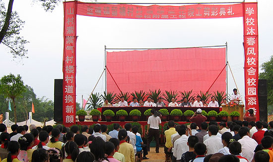 10月1日上午,在举国上下热烈庆祝中华人民共和国成立57周年的大喜日子里,省农业厅“十百千万”驻点村—留塘村村委办公楼前、村小学操场上彩旗飘舞,人声鼎沸,村民们正在此隆重举行村道硬底化、村委办公楼、村小学附属工程三项工程竣工庆典活动。