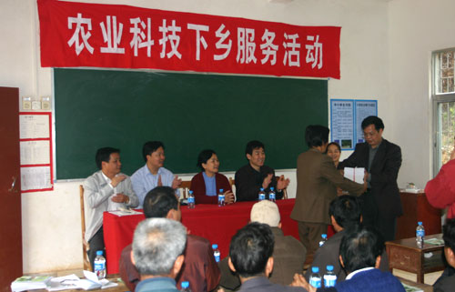 为贯彻落实省委先进办《关于“实践先进性,服务进农村”活动的通知》和省直机关排头兵实践活动领导小组办公室《关于开展我为构建和谐广东添力量志愿活动的通知》精神,2月25日,厅科教处、省农展馆党支部一行9人,利用周六休息时间,深入到紫金县留塘村,开展送科技、送温暖活动。 在黄汉藩副处长和李海林、 林慧贞副馆长的带领下,在县农业局甘集麟局长和厅驻点工作组的大力支持下,与留塘村党支部一道,拉开了送科技、送良种、送温暖活动的序幕。黄汉潘副处长代表厅科教处向留塘村拨款2万元用于建设村农技宣传栏;李海林副馆长代表省农展馆向留塘村农民送去了优质超级稻种子200斤和蔬菜、水果、禽畜、水稻等各类农业科技丛书500多册。同时邀请仲恺农学院郑慧明副教授为村民进行蔬菜栽培专项技术讲座及现场咨询,60多名农民参加了培训,深受农民群众欢迎。因场地限制,许多农民事后向村干部提意见,希望今后多举办类似技术培训班。